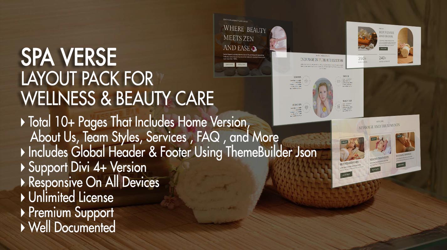 Create a calming, professional, and stylish website that converts visitors into clients with SPA VERSE – Your Complete Divi Layout Pack for Wellness & Beauty Care.